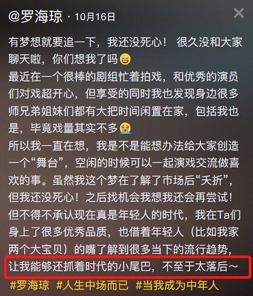 但罗海琼并未放弃事业,依旧坚持演员身份。